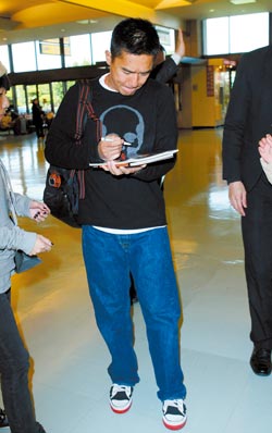 中新網(wǎng)1月16日電 據(jù)臺灣《中國時報》報道,梁朝偉結(jié)束《赤壁:決戰(zhàn)天下》臺灣宣傳行程,15日與金城武分別搭機離臺。梁朝偉在機場親切為影迷簽名。