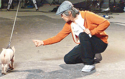 中新網(wǎng)3月3日電 日前,周星馳(星爺)秘密在香港為網(wǎng)絡(luò)游戲拍廣告片,平日星爺?shù)膹V告多有美女相伴,但這次只有小肥豬一只。而小肥豬拍攝期間又完全不受控制,要星爺施展渾身解數(shù)來逗它,大考星爺耐心。