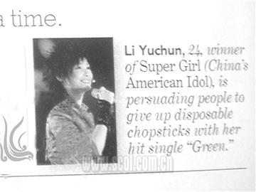 近日,在最新出版的全球頂級(jí)時(shí)尚雜志《Glamour》中,李宇春再次成為代表被重點(diǎn)介紹。在英國(guó)著名的時(shí)尚雜志《Glamour》近期的美國(guó)版中,李宇春被列為“杰出女性”的代表,與其他兩位具有國(guó)際影響力的公益女性一同被介紹,在文章中,雜志介紹了李宇春演唱的單曲《Green》,該歌曲號(hào)召人們減少使用一次性筷子。目前李宇春的玉米愛心基金的捐款已達(dá)到248萬元。 記者周帥
