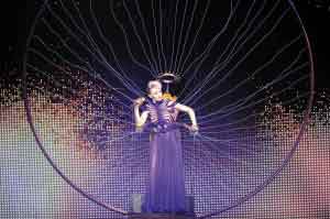 凱莉米洛開(kāi)唱連換九套服裝 巨型蜘蛛網(wǎng)舞臺(tái)震撼