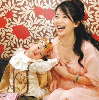 據(jù)臺灣聯(lián)合報(bào)報(bào)道,小寶弟穿上帥氣的王子裝,伸手要他最愛的公主媽媽抱抱,被醫(yī)師評為“長得超快”的頭圍戴不住王冠,不怕閃光燈的他卻不愿配合笑,但媽媽一句“裝可愛”口令,他馬上擠眉弄眼假笑,另一只手還老不自覺地往媽媽胸口抓,急得這孟庭葦猛護(hù)胸:“小寶弟,你對媽媽非禮喔!
