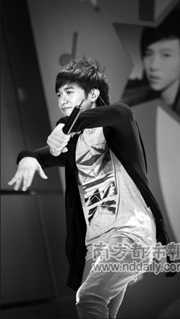 古巨基賣力演唱,“靚聲”依然受歌迷歡迎。本報(bào)記者馬強(qiáng)攝