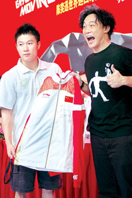 拿著奧運(yùn)戰(zhàn)衣正面反面看了好一陣子愛(ài)不釋手,陳奕迅干脆當(dāng)場(chǎng)將李小鵬送的那件衣服穿起來(lái),畢恭畢敬地將拉鏈拉得嚴(yán)絲合縫。