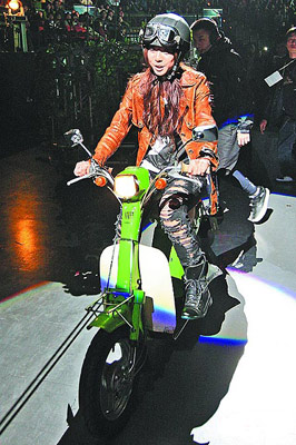 昨演唱完安可曲后,她特地戴上安全騎士帽,以皮衣造型騎機(jī)車回舞臺(tái),由于該機(jī)車當(dāng)年由鄧麗君代言,是商家珍藏的骨董,價(jià)值約40萬(wàn)元,這次特地為演唱會(huì)出借,讓她騎車時(shí)相當(dāng)小心翼翼。