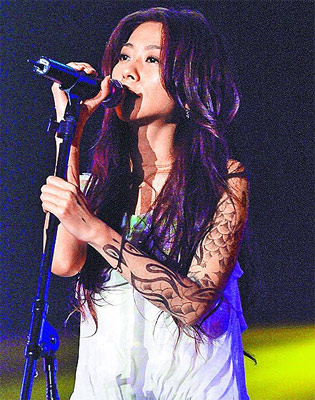 中新網(wǎng)1月12日電 創(chuàng)作歌手陳綺貞前晚在臺(tái)北小巨蛋的首場(chǎng)演唱會(huì)吸引1萬(wàn)名粉絲,昨晚第2場(chǎng)依舊座無(wú)虛席,她一共換穿5套衣服,除了報(bào)童裝、軍裝,還以安全帽、皮衣打扮,騎上價(jià)值40萬(wàn)元(新臺(tái)幣,下同)的復(fù)古機(jī)車,演唱新歌《魚》時(shí)又換上有閃閃鱗片的洋裝,化身美人魚。