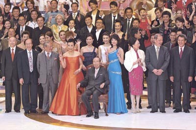 中新網(wǎng)11月20日電 無(wú)線40周年臺(tái)慶節(jié)目“萬(wàn)千星輝賀臺(tái)慶”由百歲行政主席邵逸夫(六叔)率全臺(tái)逾百名藝員揭開序幕。昨日是六叔的百歲生日,因?yàn)樗甓嫉驼{(diào)過(guò)生日,故臺(tái)慶節(jié)目沒有特意安排向六叔祝賀生日,但有40名藝員為六叔唱生日歌,還有一些有祝壽意義的歌舞。
