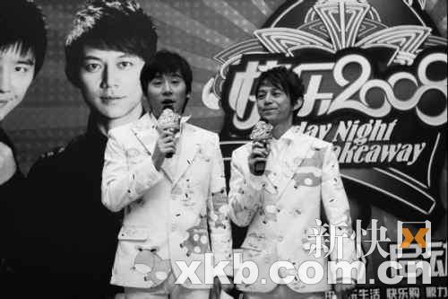 記者現(xiàn)場了解到,“快樂2008”是一檔全新的大型直播互動脫口秀節(jié)目,板塊眾多,以至于龍丹妮介紹時也不得不感嘆“我們到底要做什么是講不出來的”。有節(jié)目編導甚至告訴記者,“快樂2008”就是“快樂大本營+我是冠軍+越策越開心+勇往直前……”龍丹妮干脆直接介紹說:“我們節(jié)目的定海神針就是‘何馬組合’。這個節(jié)目是用直播的方式制作脫口秀,在中國娛樂性的脫口秀少之又少,所以‘何馬組合’除了在直播中說臺詞,更重要的是一次只有一遍,沒有錄播的重復。謝謝兩位的加盟!”