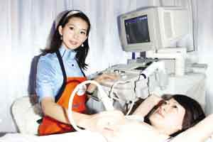 林志玲示范乳房自檢。
