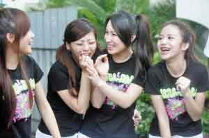 5月5日,黑澀會(huì)美眉與黑人來(lái)到廣州體院拍攝外景,參觀(guān)大學(xué)里四個(gè)各具特色的社團(tuán)——雙截棍、舞獅、武術(shù)及戲曲團(tuán)。俗話(huà)說(shuō),三個(gè)女人一臺(tái)戲,這8妞妞湊在一起,雖然馬不停蹄地趕通告,同樣不影響她們旺盛的精力及古靈精怪的個(gè)性,全程不斷大笑、嘰嘰喳喳,閑聊一刻不停歇,有時(shí)還需要工作人員提醒才乖乖地收口,談?wù)摰脑?huà)題更是包羅萬(wàn)象,從蚊子咬的包到路人很瘦的腿,都能引起她們強(qiáng)烈驚嘆。