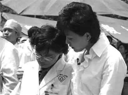 今天,我們“母愛在行動(dòng)”特別行動(dòng)小組抵達(dá)重災(zāi)區(qū)德陽(yáng)綿竹市。我和全國(guó)婦聯(lián)副主席書記處書記莫文秀、鄧婕、蔣勤勤、佟梅、心理專家金韻蓉等行動(dòng)小組的成員一起,在受災(zāi)群眾集中的綿竹南廣場(chǎng)探望了部分受災(zāi)兒童和孕產(chǎn)婦。