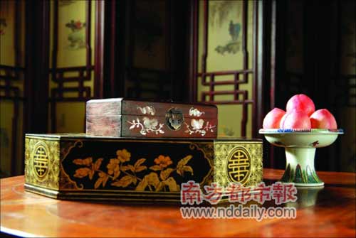 豪華臥榻:當(dāng)天拍攝的主要是賈母病重的一場戲,賈母的臥室成為主要場景。記者見到的這張超豪華臥榻,長8米,寬2.5米,床上不僅古董滿滿,連臥榻上的靠枕、被子,都精心搭配過色調(diào),“以配合賈母的身份”。
