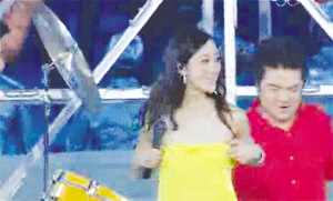 在演出播出后,內(nèi)地新一代“玉女”韓雪引發(fā)了口水戰(zhàn)。原因在于她剛上場(chǎng)時(shí)拉了一下抹胸的禮服,而且她的正面鏡頭遠(yuǎn)多于其他歌手,于是,很多其他歌手的粉絲認(rèn)為她有故意“走光”吸引眼球之嫌。