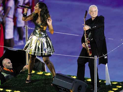 那個幫麗安娜伴奏的老吉他手是誰?此人在英國恐怕無人不曉。他便是英國王牌重金屬樂隊(duì)“齊柏林飛艇”(Led Zepplin)的吉他手吉米·佩奇(Jimmy Page)。該樂隊(duì)成立于1968年,是上世紀(jì)70年代世界最流行的搖滾樂隊(duì)之一。他們的貢獻(xiàn)在于在英國傳統(tǒng)搖滾中融入了藍(lán)調(diào)、鄉(xiāng)村搖滾、靈歌甚至中東、印度和拉丁音樂的元素,對現(xiàn)代搖滾有著不可估量的影響。但是,在1980年鼓手約翰·邦納姆(John Bonham)不幸猝死之后,“齊柏林飛艇”宣告解散。直到去年,樂隊(duì)才重組巡演。雖然樂隊(duì)成員如今大多年過六十,但當(dāng)時,一張門票就被炒到不可思議的8萬英鎊。(李麗)