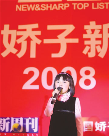 昨晚的頒獎(jiǎng)典禮一開(kāi)始,一陣天籟般的童聲就從會(huì)場(chǎng)傳來(lái),一個(gè)留著娃娃頭的可愛(ài)小姑娘唱著《歌唱祖國(guó)》登上了舞臺(tái)。她就是奧運(yùn)會(huì)開(kāi)幕式那首《歌唱祖國(guó)》的演唱者楊沛宜。楊沛宜在這次中國(guó)嬌子新銳榜中獲得了“2008年最美的聲音”,巴蜀鬼才魏明倫成為了她的頒獎(jiǎng)嘉賓。