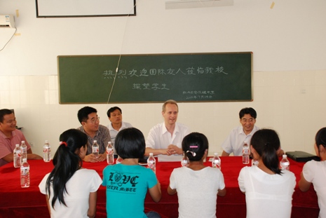 中新網(wǎng)7月15日電 據(jù)菏澤市僑聯(lián)消息,7月14日,德國中國教育資助工程協(xié)會主席托馬斯·費(fèi)爾和中國駐法蘭克?傤I(lǐng)館前領(lǐng)事譚華訓(xùn)一行,在菏澤市僑聯(lián)副主席盧文朋、張忠的陪同下,到牡丹區(qū)安興鎮(zhèn)中學(xué)和鄄城縣彭樓鎮(zhèn)兩所中學(xué)進(jìn)行助學(xué)考察。