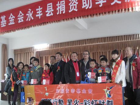 香港龍山基金會(huì)屬于非營利性慈善組織,由江西省港澳區(qū)政協(xié)委員鄧國容先生會(huì)同有識之士創(chuàng)建,多年來該基金會(huì)一直關(guān)注永豐縣教育事業(yè)、關(guān)注永豐縣貧困學(xué)生。星火——彩虹計(jì)劃是由龍山基金會(huì)和軒轅黃帝基金會(huì)聯(lián)手創(chuàng)辦的助學(xué)扶貧計(jì)劃,主要是扶持江西省革命老區(qū)、少數(shù)民族地區(qū)及貧困山區(qū)的文教事業(yè)。自2004年起,星火——彩虹計(jì)劃已經(jīng)組織了多次“贛港心連心”江西訪問交流團(tuán)來該縣開展捐資助學(xué)活動(dòng)。累計(jì)已援建龍岡畬族鄉(xiāng)中心小學(xué)教學(xué)樓、瑤田鎮(zhèn)三灣小學(xué)軒轅黃帝教學(xué)樓、八江鄉(xiāng)高家小學(xué)軒轅黃帝教學(xué)樓、潭頭鄉(xiāng)楊梅江小學(xué)白求恩教學(xué)樓,資助金額42萬元;資助全縣21個(gè)鄉(xiāng)鎮(zhèn)貧困學(xué)生400人次,資助金額12萬元;捐助教學(xué)用品及學(xué)生學(xué)習(xí)、生活用品折合人民幣達(dá)5萬多元。