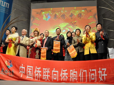 中新網(wǎng)1月6日電 據(jù)中國外交部網(wǎng)站消息,2010年1月3日晚,中國僑聯(lián)組織的“親情中華”藝術(shù)團歐洲之行首場演出在德國慕尼黑舉行。慕尼黑總領(lǐng)事馬晉生和夫人劉霞、領(lǐng)館館員及慕尼黑工業(yè)大學(xué)副校長孟麗秋、巴州華商會、僑學(xué)界、中資機構(gòu)和一些德國友人約800人觀看演出。