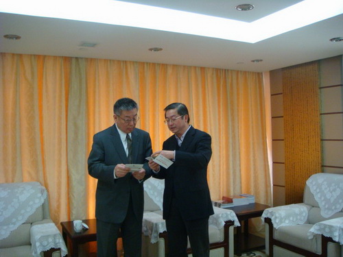 老朋友相見,格外高興。胡思源向崔明華介紹了紐約州立大學(xué)在08年8月支助150名大學(xué)生赴美學(xué)習(xí)的情況,以及此次帶領(lǐng)紐約州立大學(xué)校長老師和200位美國學(xué)生赴四川地震災(zāi)區(qū)進(jìn)行學(xué)習(xí)交流等情況。