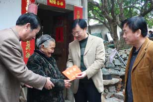 一來到仙游縣榜頭鎮(zhèn)印尼歸僑楊啟榮家,林澤春就帶領同行人員進屋察看他家那原瀕臨倒塌的土墻,當發(fā)現(xiàn)原來的那堵土墻已換成了磚墻時,連聲說,改造成磚墻到下大雨時再也不用擔心墻倒下來了。當細心的林澤春發(fā)現(xiàn)房間里很暗但沒有電燈,了解到因一人獨居沒有收入家中還沒通電時,立即交待隨行的鎮(zhèn)黨委書記,要多多關心困難歸僑,臨近春節(jié)沒有電生活會極不方便。村主任解釋說,電工已來他家兩次,都沒遇到人,保證今天晚上通上電,另外老楊的最低生活保障也已報批。當楊啟榮從林澤春手中接到慰問金時,感激之情不能言表。