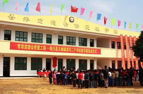 通過(guò)廣西自治區(qū)僑辦牽線搭橋,捐助支持廣西各項(xiàng)公益事業(yè)的僑社和慈善團(tuán)體中,香港道德會(huì)較為突出。香港道德會(huì)是香港有名的慈善機(jī)構(gòu),2009年先后在廣西欽州市欽南區(qū)新營(yíng)村、賀州市八步區(qū)東南村、岑溪市地麻村、陸川縣清耳村等地,捐建4所小學(xué),捐贈(zèng)總額達(dá)172萬(wàn)元人民幣。這些受捐建的小學(xué)有個(gè)響亮的名字:“香港道德會(huì)僑愛教學(xué)樓”。