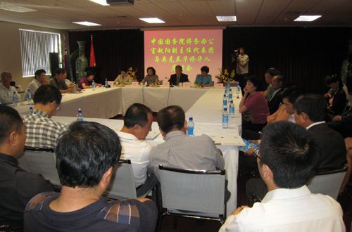 與奧克蘭華僑華人各界人士的座談會在中國駐奧克蘭總領(lǐng)館舉行,由總領(lǐng)事廖菊華主持,當(dāng)?shù)貎S團、僑校、僑報負責(zé)人及專家學(xué)者等約50人與會,大家就共同關(guān)心的奧克蘭華僑華人群體的變化與問題研究、華僑華人身份與國籍問題、僑胞權(quán)益保護、華文教育與弘揚中華文化、和諧僑社建設(shè)及促進中外各領(lǐng)域交流和中國和平統(tǒng)一大業(yè)等,廣開思路、暢所欲言,深入交換看法和意見,積極為海外僑務(wù)工作的科學(xué)發(fā)展建言獻策。