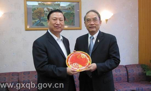 3月26日,馬來西亞雪隆廣西會(huì)館和泰國(guó)廣西總會(huì)永遠(yuǎn)名譽(yù)會(huì)長(zhǎng)饒培中到訪廣西,馮祖華接待了到訪的客人,向他們通報(bào)了廣西的旱情,馬來西亞雪隆廣西會(huì)館和泰國(guó)廣西總會(huì)永遠(yuǎn)名譽(yù)會(huì)長(zhǎng)饒培中當(dāng)即分別向廣西災(zāi)區(qū)捐款一萬(wàn)元和一千元。