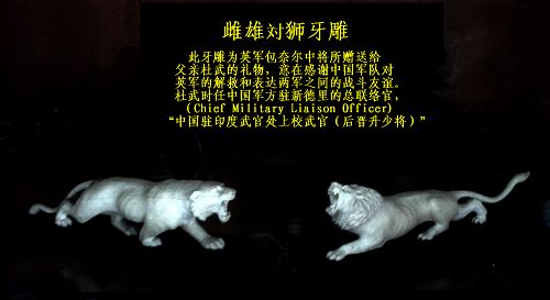 據(jù)悉,此次捐贈(zèng)儀式交接的一對(duì)印度象牙精雕的雌雄獅子,是1943年由英軍元帥蒙巴頓的辦公室主任鮑威爾中將贈(zèng)送給杜武將軍的私人禮物,意在感謝中國(guó)遠(yuǎn)征軍于1942年4月在緬甸仁安羌解救7000名被日軍包圍幾乎彈盡糧絕的英緬軍官兵和500名西方國(guó)家的記者、教師和傳教士。這對(duì)牙雕曾輾轉(zhuǎn)于印度,重慶,南京,渥太華,卡爾加里。歷經(jīng)68年的蹉跎歲月,如今由侵華日軍南京大屠殺遇難同胞紀(jì)念館收藏并展出。這對(duì)牙雕是中國(guó)抗戰(zhàn)史上非常稀有的歷史文物,是中國(guó)遠(yuǎn)征軍英勇作戰(zhàn),解救英軍的歷史佐證,具有較高的歷史價(jià)值。(許嘉明)