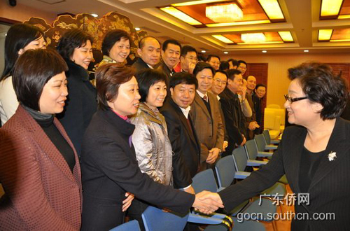 聽了吳銳成的匯報(bào)后,李海峰發(fā)表了講話。她首先對(duì)廣東省、市僑辦主任(局長(zhǎng))拜訪國僑辦表示歡迎,對(duì)近年廣東僑務(wù)工作取得的成績(jī)給予了充分肯定。李海峰說,近年來,廣東各級(jí)僑務(wù)部門講政治、講大局、富有活力,自覺將僑務(wù)工作擺在國家和地方大局中去謀劃、去開展,無論國內(nèi)國外、經(jīng)濟(jì)科技、文化宣傳等各項(xiàng)僑務(wù)工作都有新的成效,取得明顯成績(jī),如援建汶川“僑心居”、開展“萬僑助萬村”活動(dòng)、推動(dòng)華僑農(nóng)場(chǎng)改革發(fā)展等,效果都很好。