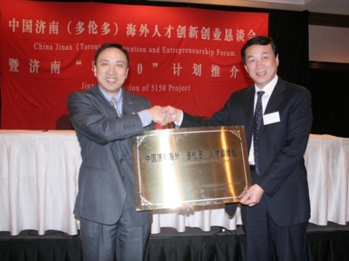 經(jīng)濟(jì)南僑辦多次聯(lián)絡(luò)協(xié)調(diào),在前期交流考察基礎(chǔ)上,濟(jì)南市政府分別與在當(dāng)?shù)赜杏绊、有?shí)力、在僑界聯(lián)絡(luò)廣泛的美國華源科技協(xié)會、中國旅美科技協(xié)會、加拿大專業(yè)人士協(xié)會三家華僑華人科技社團(tuán),簽約設(shè)立濟(jì)南(硅谷)、濟(jì)南(紐約)、濟(jì)南(多倫多)三處人才引進(jìn)聯(lián)絡(luò)處,殷魯謙為聯(lián)絡(luò)處授牌,為美加海外高層次人才到濟(jì)南創(chuàng)新創(chuàng)業(yè)搭建新的交流合作平臺。