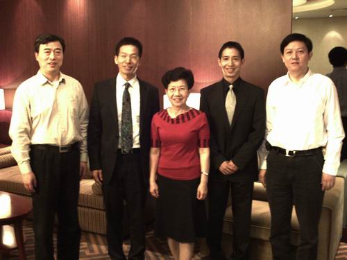 中新網(wǎng)5月10日電 據(jù)江蘇省僑聯(lián)消息,5月7日,江蘇省僑聯(lián)主席郁美蘭、副主席史宇在江蘇省南京市親切會見了江蘇省僑界專業(yè)人士聯(lián)合會理事、南京大學(xué)德國校友會會長、南京大學(xué)歐洲校友會聯(lián)合會主席、IBM國際商業(yè)機械公司資深執(zhí)行官王榮虎博士。南京大學(xué)校友總會副會長兼秘書長高澎、南京大學(xué)德國校友會副會長胡睿參加會見。
