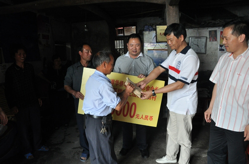 楊雷、朱有民一行人先后來到兩村,跟村兩委人員親切交談,了解村里的基本情況。肖山村全村800多人,有160多人留守在家,村民們主要收入來源就是稻田養(yǎng)魚和油茶培育。而泉山村全村也就70多戶村民,經(jīng)濟來源單一,生活生產(chǎn)困難。座談會上,村干部們就如何發(fā)展該村經(jīng)濟效益而暢所欲言,同時也提出了由于地處偏遠,經(jīng)濟發(fā)展不起來,資金不足而導致至今沒有一幢像樣的村委大樓等困難和問題。朱有民在了解情況后,毫不猶疑地向兩村各捐贈了3萬元人民幣,用于村委大樓的建設,并表示以后村里如果有問題和困難,他都會一直關注和支持的。
