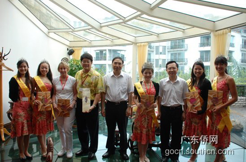 中新網(wǎng)6月12日電 據(jù)廣東僑網(wǎng)消息,6月11日上午,廣東省僑辦副主任林琳、副主任鄭建民在省僑辦會見了美國夏威夷州長林格及夏威夷中華總商會第61屆水仙花皇后友好代表團(tuán)一行35人。